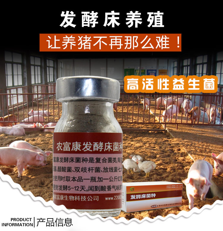 ![]() 以100平方、60cm深猪舍为例) 农富康发酵床菌液100公斤,锯末30立方,稻壳30立方,玉米 面或麦麸50公斤。
