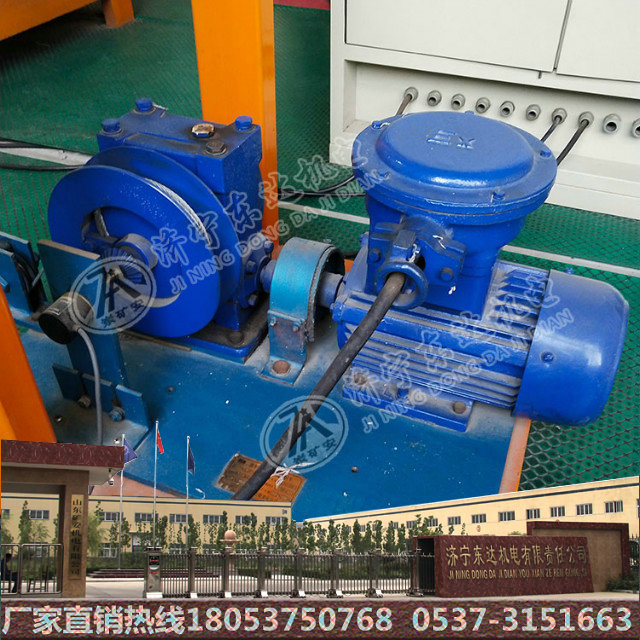 提升绞车由防爆电动机、减速机、滚筒、底板和位置传感器支架及位置传感器组成。减速机采用蜗轮蜗杆减速型,防止电机停转时挡车栏的自动下滑。