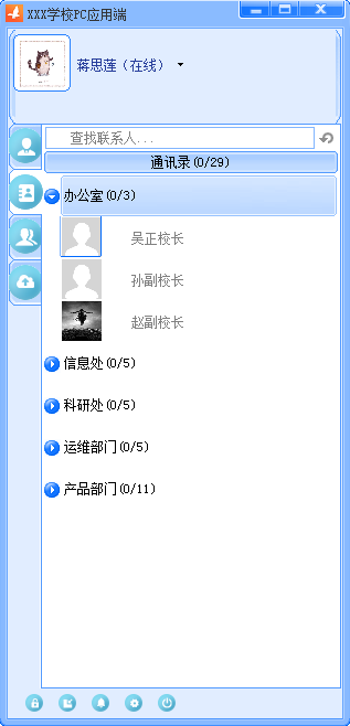 1、产品简述校园即时消息应用系统是一款集校园即时通信、业务待办提醒、通知公告推送、移动办事大厅等功能于一体的应用软件。由服务端、Android端、iOS端、PC应用端四个部分组成。