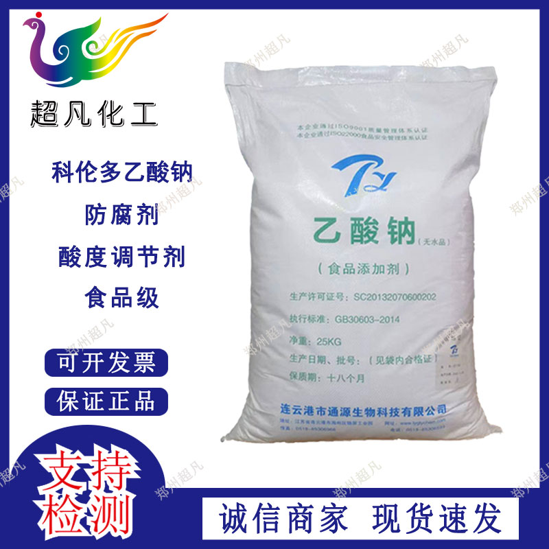 无水乙酸钠 食品级无水乙酸钠99%白色晶体乙酸钠醋酸钠结晶醋酸钠食品级醋酸钠99%纯白色结晶乙酸钠25公斤一袋