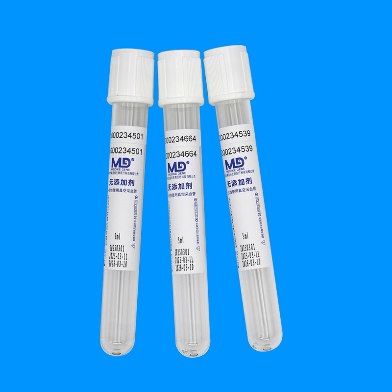 无添加剂的干燥真空管,采血管内壁均匀涂有防止挂壁的药剂(硅油)。它利用血液自然凝固的原理使血液凝固,等血清自然析出后,离心使用。主要用于血清生化(肝功、肾功、心肌酶、淀粉酶等)、电解质(血清钾、钠、氯、钙、磷等)、甲状腺功能、药物检测、艾滋病检测、肿瘤标志物、血清免疫学等。