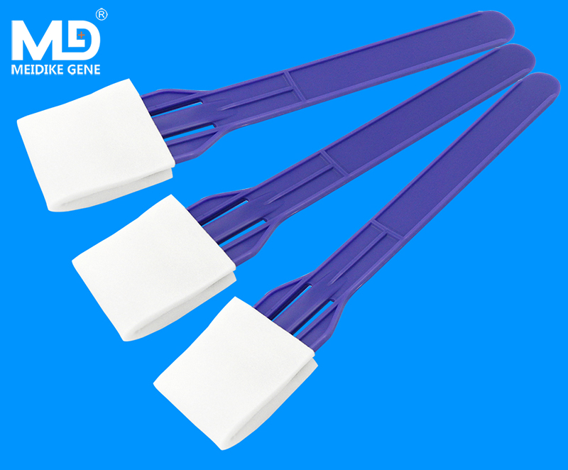 6、长握柄减少污染的风险,样品袋材质牢固防漏。将海绵安装在涂抹棒上的设计使得涂抹棒能够进入难到达部位,并且海绵在擦拭后能够从手柄轻易折断,而无需直接处理海绵。