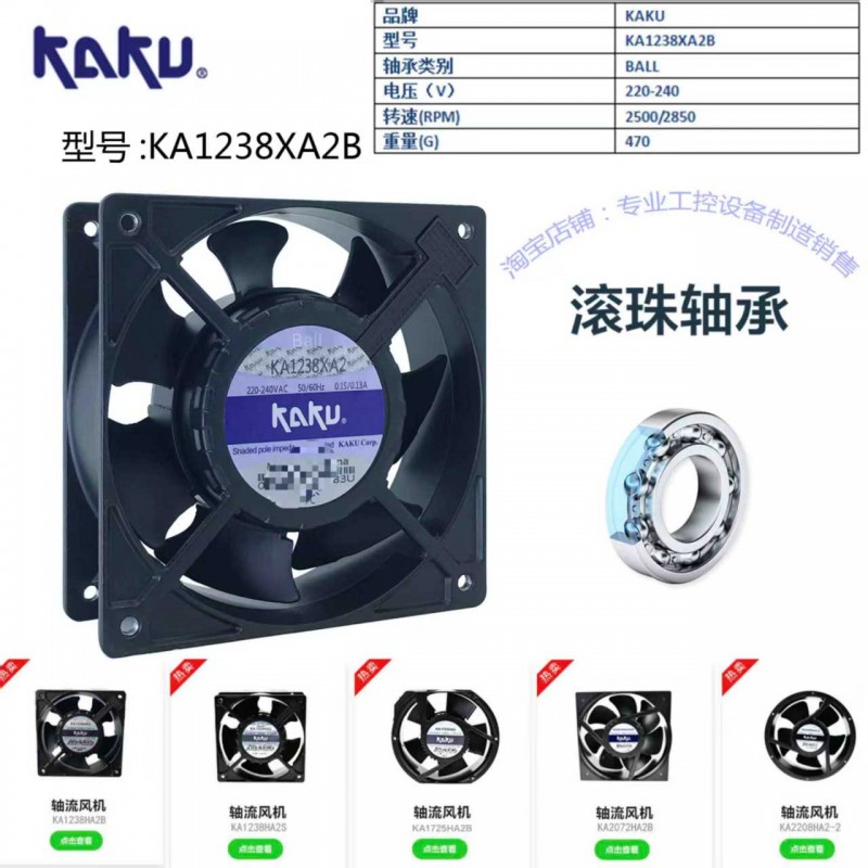 · 品牌与货号:该风机品牌为KAKU(卡固),货号、型号、产品规格、订货号均为KA1238XA2B ,它属于轴流风机,是全球领先采购批发平台阿里巴巴中国站上展示的商品。