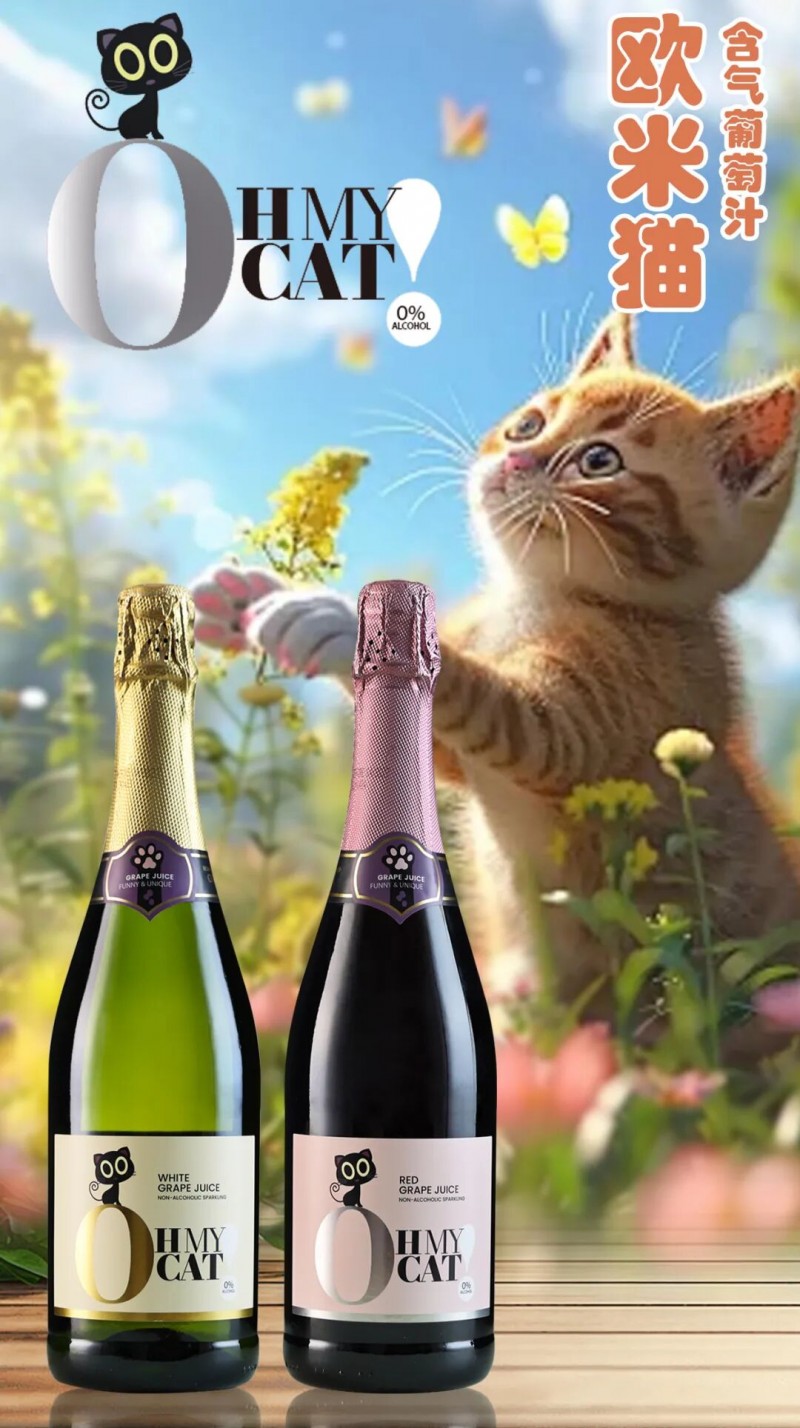 欧米猫红葡萄汁 西班牙原瓶进口无醇气泡葡萄汁