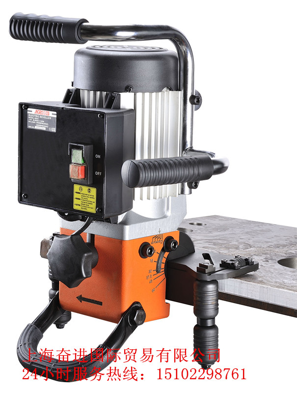 EB24R拥有AC感应马达,具有高耐力、低噪音、高扭力和高转速等特性,倒角的角度从0度调整到最大60度,最宽达20mm,重量只 有20.1公斤,设计非常轻巧且坚固,可以在使用过程中让操作者更方便也更容易使用,这个多功能的倒角机能够导圆管或平面, 各式各样角度从0度到60度,只要重新调整轮轴就可以轻鬆转换导平面或导圆管,导圆管的范围可从15mm到350mm,如果需要更大 的尺寸,可以选购300mm到600mm的水平固定座。