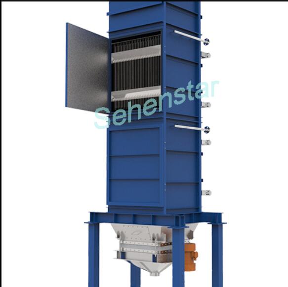 SV粉体流换热器的立式结构既紧凑且模块化。可以通过增加板片组调节处理量,非常节省安装空间。