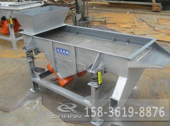 花生米直线筛使用振动电机作为振动源,采用双振动电机驱动,当两台振动电机做同步、反缶旋转时,振动电机偏心块所产生的激振力在平行于振动电机轴线的方向相互抵消,在垂直于振动电机轴线的方向重叠为一合力,因此花生米直线筛机的运行轨迹为一直线。两电机轴相对筛面有一倾角,在激振力和物料自重力的合力下,物料在筛面上被抛起跳跃式向前做直线运动,通过各不同层次筛网筛分多种规格的筛上物、筛下物,又从不同的出料口排出,流入料仓或盛料筒,从而达到对物料进行筛分的目的。