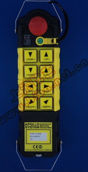 工业无线遥控器主要用于冶金、造船及集装箱码头、仓储、机械制造、化工、造纸、建筑和工程机械等使用提升机、行车等起重机械并使之实现遥控操作的行业。其有效控制范围为半径100米的任何方位且不受障碍物的影响,操作人员只需携带轻巧的发射器,自由走动并选择最佳(安全)视觉位置实行操作,清除以往由于视线不清、线控束缚、环境恶劣或指挥配合不当等因素造成的事故隐患。即保证了安全操作又大幅度提高了生产效率。
