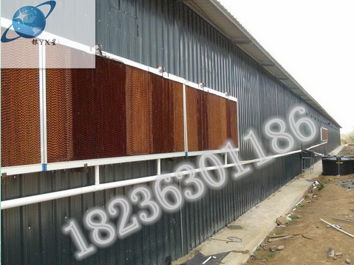 湿帘降温系统的降温过程是在其核心---纸垫内完成的。在波纹的纤维纸表面有层薄薄的水膜,当室外干热空气被风机抽吸穿过纸垫时,水膜上的水会吸收空气中的热量进而蒸发成水蒸气,这样经过处理后的凉爽湿润的空气就进入室内了。这自然的过程犹如风吹过水面一样。“湿帘---风机”的纵向通风降温组合是最经济、有效的温室夏季降温措施。
