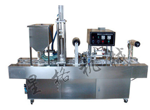 BG32A-2C塑杯(盒)气动灌装封口机适用于各种八宝粥、绿豆沙、饮料、调料、果酱、豆腐等产品的生产,具有自动落杯、充填灌装、消菌、光电跟踪、封口(盖)、自动对芯剪切、废膜回收等功能。整机自动化程度高,封口强度好,结构合理,生产效率高,适用于各种进口、国产的铝塑、PP、PE、CPP等复合卷筒包装封口材料。
