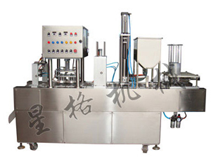 BG60A-2片膜充填封口机适用于各种酸奶、果冻饮料等产品的生产,能自动完成塑(纸)杯的自动落杯、自动灌装、自动吸片膜、紫外线消菌、两道热封等功能。整机采用日本欧母龙可编程逻辑控制器、CIP自动清洗料筒、台湾气动控制元件、智能数显温度控制系统,具有封口强度高,密封性好,故障率低等特点。