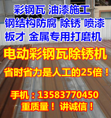 汽油除锈机 铁板钢结构屋顶彩钢翻新除锈机 彩钢瓦除锈机 打磨轮 彩钢瓦打磨机 彩钢瓦翻新机 大量批发直销 直销彩钢瓦除锈机打磨翻新机 彩钢瓦除锈机打磨轮 彩钢瓦除锈机——解决褪色防腐蚀!