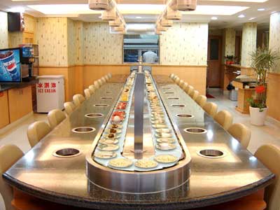 回转火锅输送带,适应了饮食界推陈出新,适应了现代人对饮食新奇的追求。
