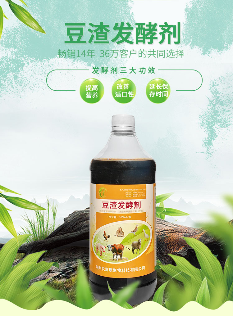 总之,市场上的豆渣发酵剂有好有坏的,具体好不好?只有用过了才知道哦,我们农富康的豆渣发酵剂也不贵,自己可以尝试下,毕竟别人说的再好,不如自己一试,农富康13年的老牌子,成本低,质量有保证 ,您值得信赖!买就送技术资料一套,并有全程的技术指导。诚招空白地区代理商,厂家联系电话:186-9732-5902