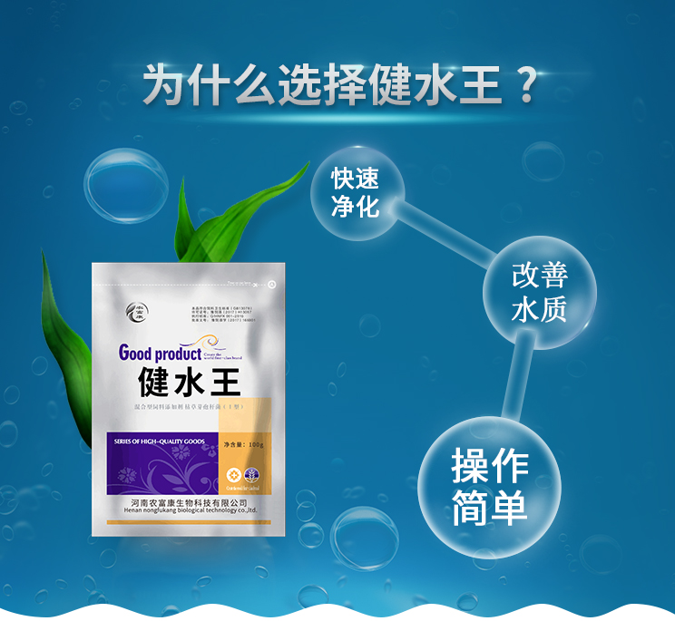 水产养殖户都知道水质变坏直接影响的是养殖效益,在水产养殖过程中经常会出现各种各样的水质问题,如:水体发黑、发绿、发红、发浑、发臭等水质问题,因此调节水质也是水产养殖中重要的工作之一。然而,在水产养殖规程中,又不可避免地会出现水质发黑、发浑、发臭的现象或严重恶化的情况,因此一款有效预防和解决各种水质问题的产品成为了养殖户的首要选择。农富康健水王为调水净水专用微生物制剂产品,直接泼洒使用,使用方便见效快.厂家订货电话:134-6025-8890 (微-信-同-号)马经理