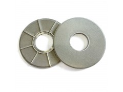 熔体过滤碟片也叫盘片式滤芯,应用于高粘度熔体的过滤。片式设计使得每立方米的有效过滤面积极大,实现了空间的有效利用和过滤装置的微型化。主要滤材是采用不锈钢烧毡或多层不锈钢烧结网。特点:滤芯承受压力均匀;过滤性能稳定;可以反复清洗,寿命长。